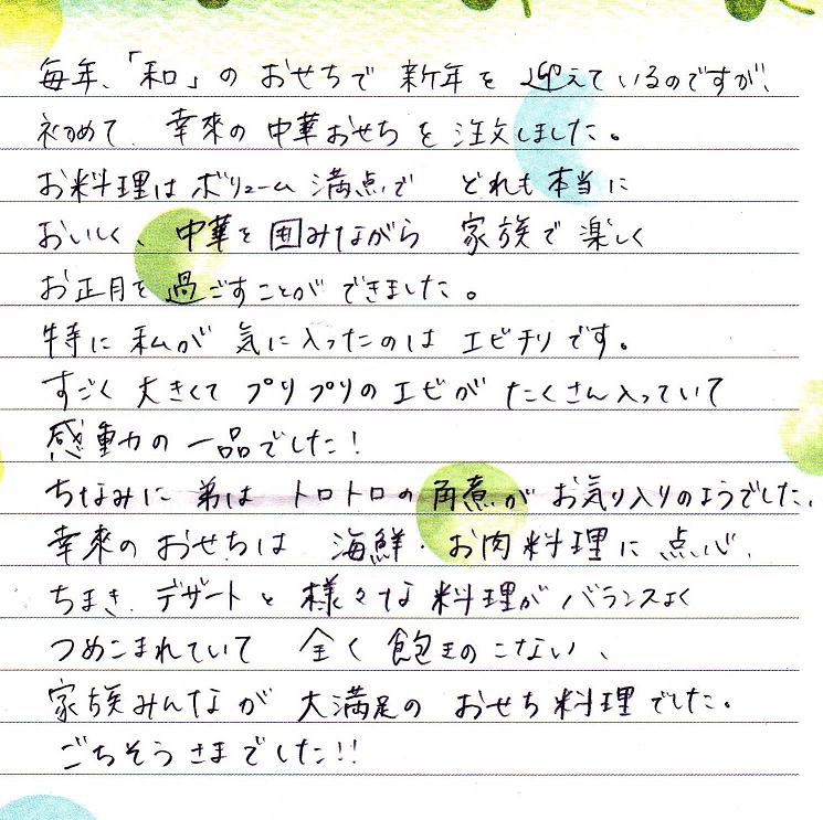 幸來恒例の「中華おせち」も20年間作り続けてきました。